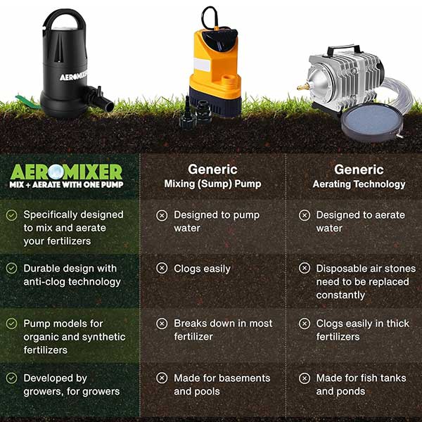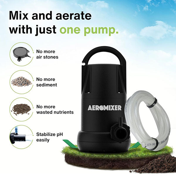 AEROMIXER Tall Tank Kit (Organics) - 3/4 HP Submersible Mixing + Aerating Pump - Water Mixer Pump for Organic Fertilizers, Water Aerator Pumps - Water Aerator for Garden, Water Submersible Pumps - Gardening Aerator (for tanks over 5′ tall)