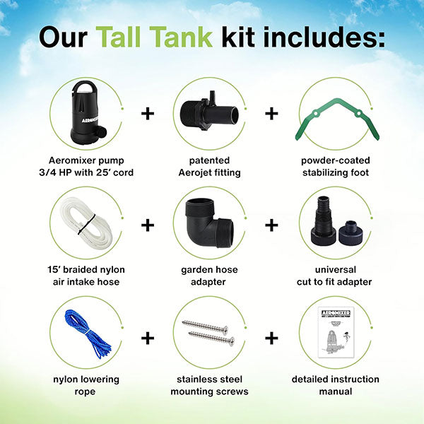 Aeromixer Tall Tank Kit, 3/4 HP Submersible Mixing + Aerating Pump