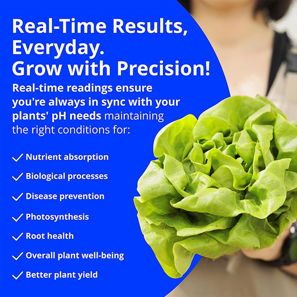 - Monitor pH in water and soil (acid or alkaline) for precise up and down adjustments with lab quality probe; General uses incude indoor gardeing, growing tent, swimming pool, drinking water, aquarium, fish tank, coco, rockwool, and more