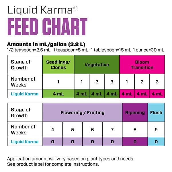 When used in combination with your preferred plant food, Liquid Karma may enhance the availability of nutrients for plant uptake.