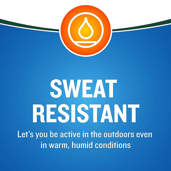 - SWEAT RESISTANT: Won't sweat off – lets you be active in the outdoors even in warm, humid conditions.