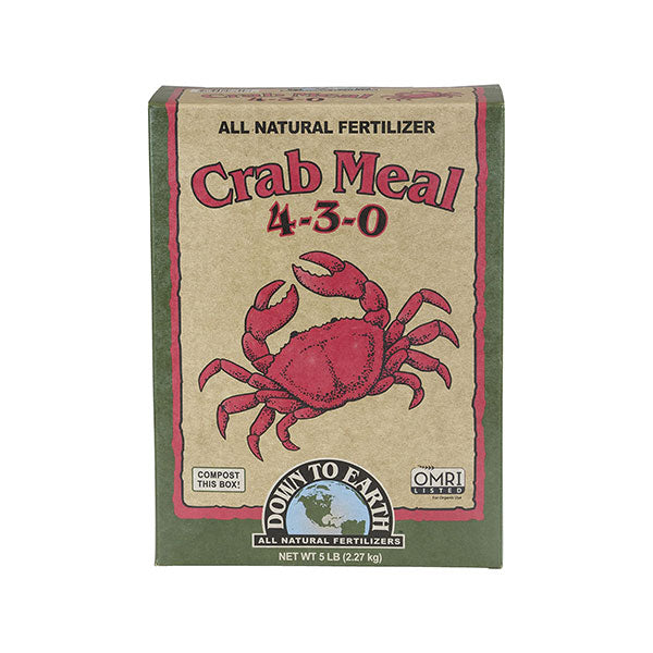 - Down to Earth Crab Meal is a five pound box of fertilizer with 4-3-0 formula and is listed by the Organic Materials Review Institute (OMRI) for use in organic production.