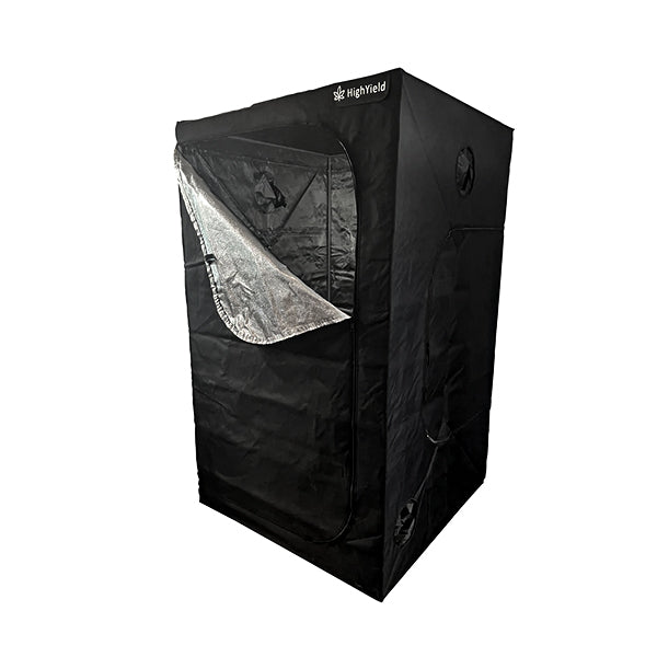 Condense your indoor agriculture space with High Yield's grow tent, which uses diamond reflective aluminum foil on the interior and uses 210D Polyester Oxford on the exterior. This high quality material uses cutting edge technology to increase reflective lighting. This quick to assemble and easy to use tent is made for all growers.