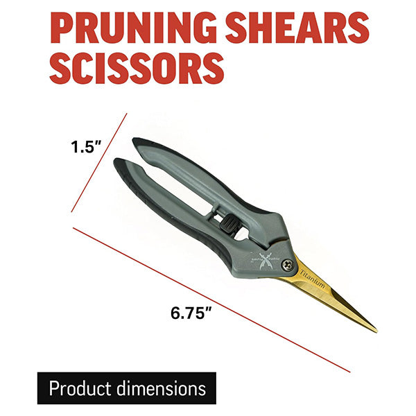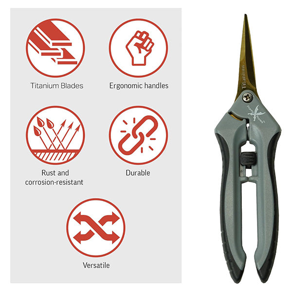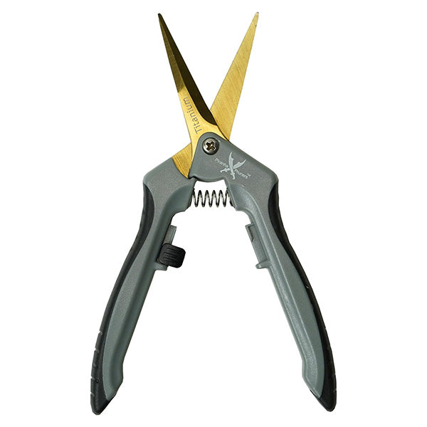 Piranha Trimming Scissors cut through branches and stems for convenient plant care, and maintenance. Use the metal shears for cutting flowers, herbs, trimming shrubs, bonsai trees, bay laurel trees, and other small trees or plants. Featuring straight heavy-duty titanium blades and ergonomic handles for a comfortable hold.