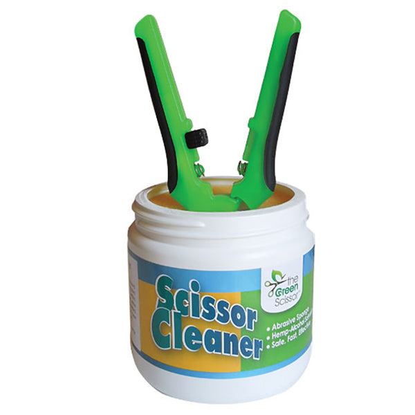 The Green Scissor® Scissor Cleaner is easy to use and travels with you on the go. You can get your scissors and snips clean fast. Trimmers appreciate this no mess option for keeping scissors working at their best during long and/or precision trimming sessions. You can even keep a second pair of scissors soaking while you work.