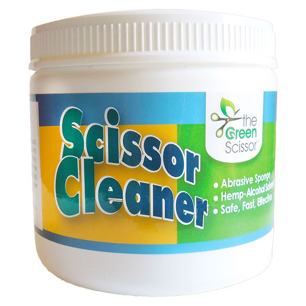 The specially constructed abrasive sponge removes grime from scissors without leaving particle residue behind. Its custom blended alcohol-hemp solvent works fast to loosen and remove sticky build up from blades. Scissor Cleaner won’t dull or corrode your blades.